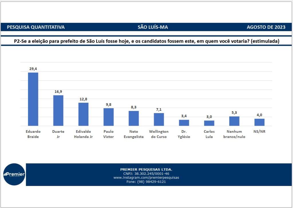 Pesquisa Premier confirma Braide líder e mostra Paulo Victor à frente de Neto Evangelista