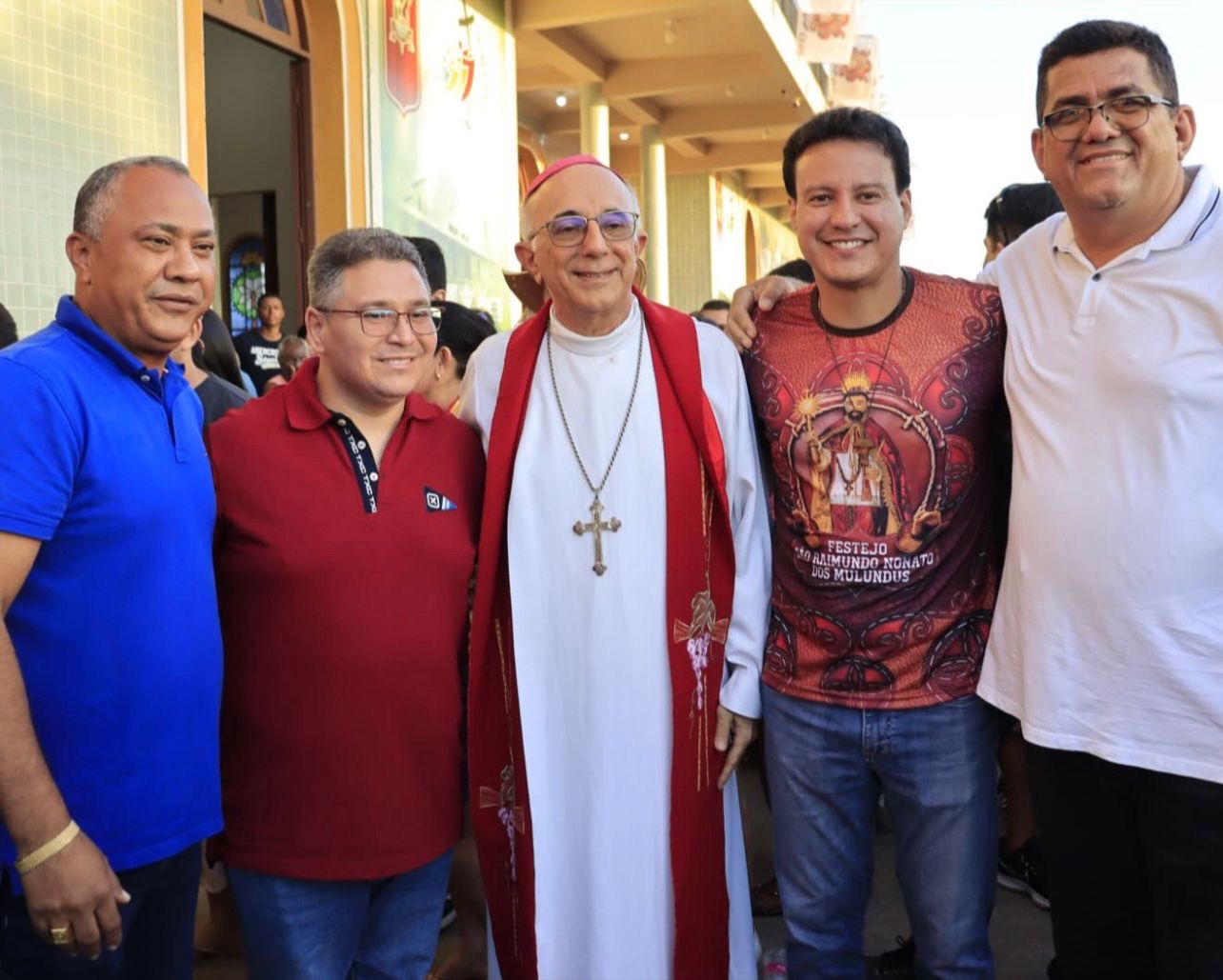 Ao lado do vice-governador e aliado político, Felipe Camarão (PT), o prefeito de Vargem Grande, Preto (PP), participou da procissão e missa de encerramento das festividades de São Raimundo Nonato dos Mulundus. Camarão estava acompanhado do vereador Júlio do Moisés de Coroatá e do Presidente da Câmara Municipal de Vargem Grande, Thiago Braz (PP). Após a agenda religiosa teve a política, mas isso será assunto para outra postagem.